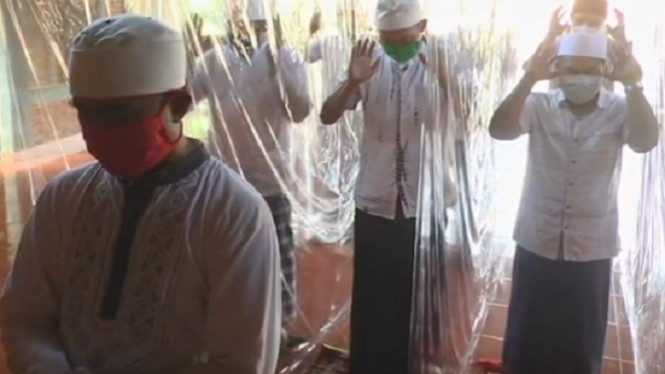 Masa pademi Corona, tidak menyurutkan semangat pondok pesantren ini melaksanakan sholat berjamaah.
