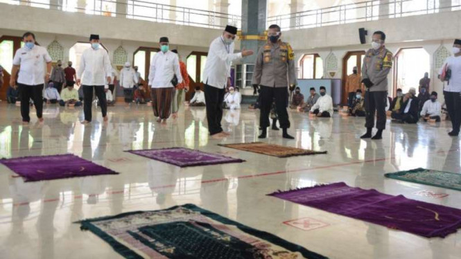 Hari ini. Bupati Tangerang, Ahmed Zaki Iskandar simulasikan pembukaan masjid dengan protokol kesehatan Corona.