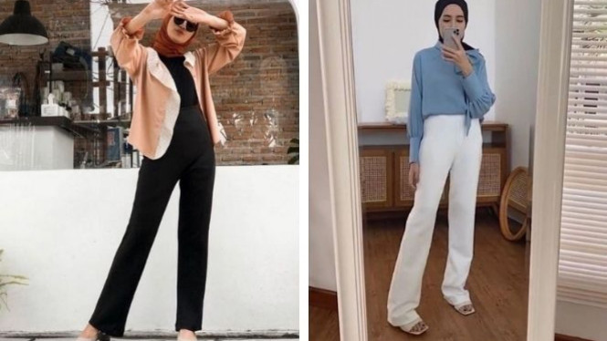 High waist adalah model celana bahan yang dipakai di atas pinggang, dan bisa dipadu-padankan untuk wanita berhijab.